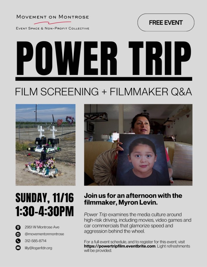 Myron Levin’s documentary “Power Trip” looks at the the media culture around dangerous driving. Join SBC for a screening on Sunday 11/16.