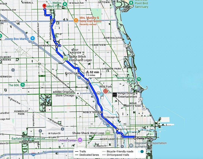 For those who would like to bicycle to the screening, John will lead a bike ride to the venue, about eight miles at roughly 10 mph. The ride will meet at the Daley Plaza Picasso, 50 W. Washington St., at noon, departing by 12:30 p.m., and traveling largely on protected bike lanes and the 312 RiverRun trail. Here’s a rough draft of the route.