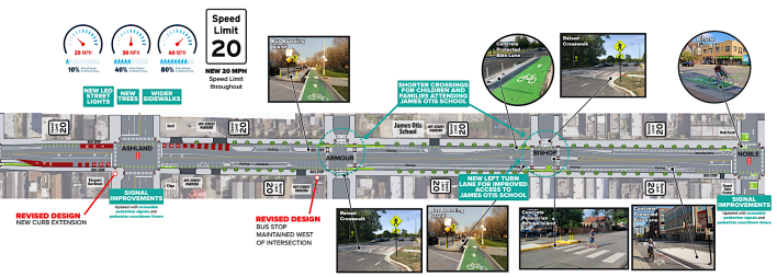 As for the notion protected lanes are bad for seniors (or people with disabilities, or families with small kids), in reality they calm motorized traffic and shorten pedestrian crossing distances, and make it safer and easier to cross streets. And the Grand plan already includes some short stretches of bus lanes, as well as bus boarding islands, which allow the operator to pick up passengers without having to pull to the curb, which means faster buses!