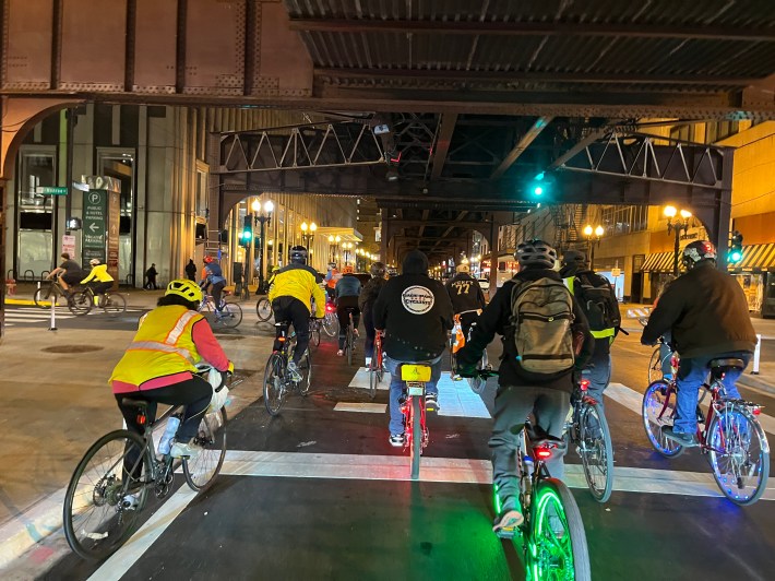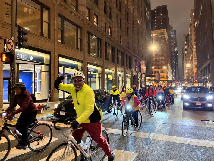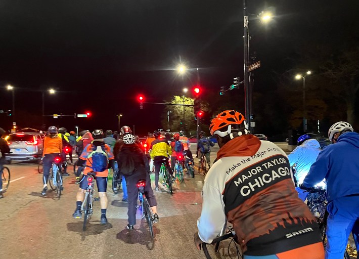 Equiticity Community Mobility Rituals Lead Nayla Hale, who led their tour, provided Streetsblog Chicago with more info on the purpose of the convergence. "They’ve had this ride in partnership together to end the riding season for the last six years," she said. "It’s meant to uplift and unify the bike community of Chicago from cyclists, to bike shops, to advocacy groups, and youth programs. I’ve only lead the ride this year and last year."