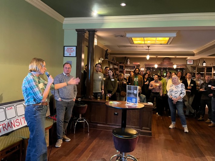 Next, Lucas announced the Better Streets’ 2025 Activist of the Year Awards for people who had volunteered with the group, particularly with a focus on transit this year. “When we’re talking about canvassing, when we’re talking about phone banking, when we are talking about creating an entire comedy show around public transportation, we have some people who have shown unbelievable dedication to this fight, and we really want to take some time tonight to honor them,” he said.