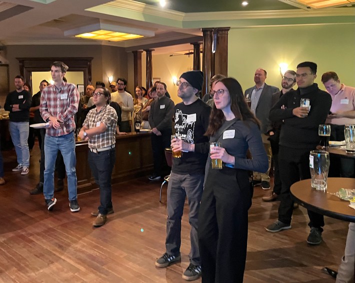 Several dozen people showed up to the gathering at Mrs. Murphy & Sons Irish Bistro, 3905 N. Lincoln Ave. in the North Center community. After wrapping up a couple of Streetsblog posts early in the evening, I was a little late to the party. But I’m told Board President Scott Robin talked about the advocacy group’s Community Blocks initiative, and Executive Director Kyle Lucas discussed the transit bill.