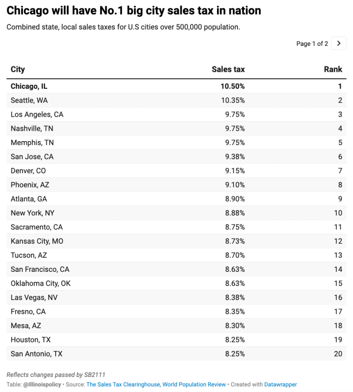 Read IPI's "Chicago’s high sales taxes about to increase to No. 1 in nation" here.