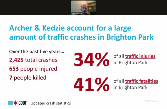 CDOT also determined that through-traffic was involved with most injuries to vulnerable road users. “We found that 70 percent of drivers who have hit someone walking or biking live outside of Brighton Park,” Huff said.