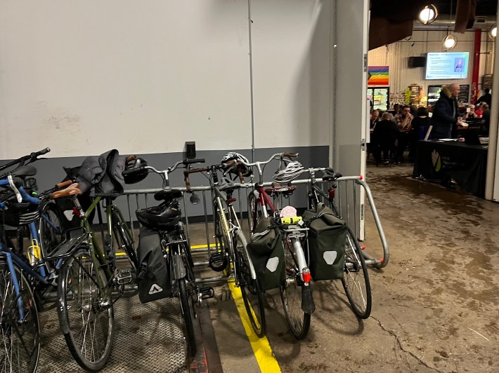 Yesterday's #GivingTuesday was very cold and snowy, and the protected bike lanes were generally still full of the white stuff long after the storm. (Don't worry, Streetsblog is still trying to get to the bottom of that issue.) But at least a dozen of us pedaled to one of Chicagoland's most vibrant celebrations of the livable streets movement, the Active Transportation Alliance's annual member party.