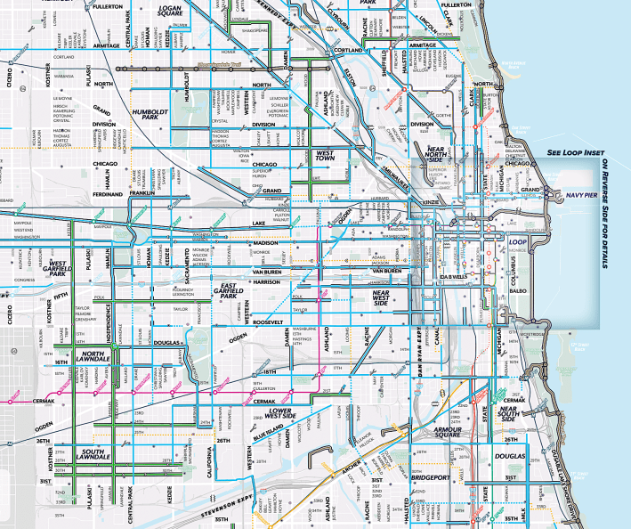 When it comes to building protected lanes, CDOT should, in the words of legendary Chicago architect Daniel Burnham, "Make no little plans." For example, the department is currently installing 0.8 mile of PBLs on Clark Street between Winnemac and Montrose avenues in Uptown. Instead, say next year, the City should announce, "This is the year we're making all of Clark a low-stress route, about 12 miles between Chinatown and Evanston." Do the same thing with a grid and clock face of other major, potentially bike-friendly corridors within a short period of time, Paris-style.