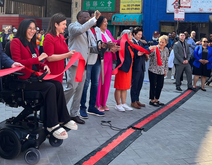 In July 2024, CDOT cut the ribbon on the first phase of the bikeway project, a 1.2-mile stretch of PBLs on Grand between Chicago and Damen avenues.
