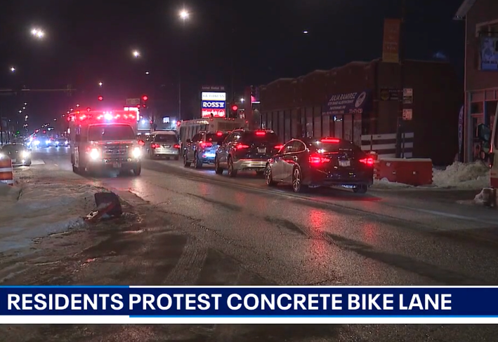 "Some residents say the [bike lane] barriers have shrunk the road to one lane in each direction and they're feeling the impact: rush hour backups, drivers cutting through side streets, and big questions about whether ambulances and firetrucks can get even get through," Fox said, similarly.