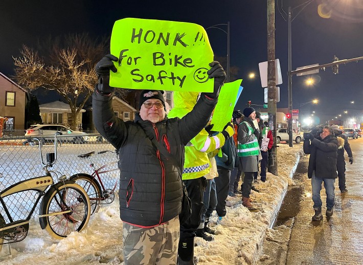 Gerardo Zavala said he lives about two miles southwest from the rally site in the Archer Heights neighborhood. "Once I heard there was going to be a counter-protest, I felt like I had to come," he said. "I am for this project,. I heard about it through social media the past couple of years and I was pretty excited about it because I've just gotten into biking recently. What has kept me away from biking more has been the lack of protected bike lanes on the Southwest Side."