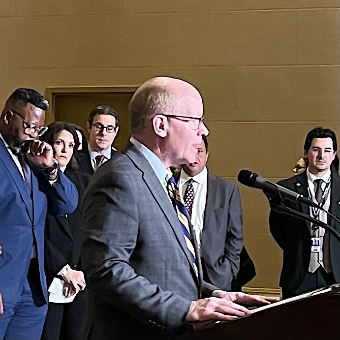 “Yet here we stand at Union Station, a shining symbol of the beauty and greatness of our transit system, and that includes a modern, statewide transit bill. It demonstrates to the people of Illinois, as well as the nattering nabobs of negativity [a Spiro Agnew reference] that our state is tough and resilient and forward-looking. Far from from heading towards the abyss, as some predicted, we are on the verge of delivering a world-class transportation network. This new law not only averts the cliff, but preserves affordability, and makes transit safer and more reliable. Thank you all for making that happened.” [The room applauded.]