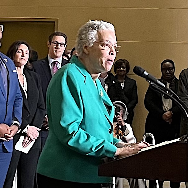 “This is kind of like my Oscar moment, so please bear with me. [She joked as she lowered the podium.] …This legislation replaces outdated bureaucracy with the unified Northern Illinois Transit Authority… It invests $1.5 billion to ensure that buses and trains are safe, clean, fequent, and dependable… [And] for the disability community this is a tremendous step forward.”