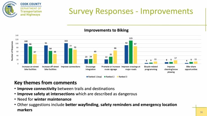 Another person asked whether this project will include bike storage at the airport, or if that already exists. “We’re aware of bike parking at the CTA station at O’Hare, and we’re not aware of any other parking at O’Hare itself,” Seymour replied. [Fun fact: Back in the mid-2000s when I worked as the Chicago Department of Transportation’s bike parking coordinator, I rode the Blue Line to O’Hare with the crew that installed the first parking racks inside the station. – John Greenfield, editor]