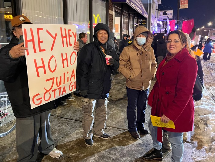The person with the megaphone is Julie Sawicki, a longtime Southwest Side resident, real estate broker, and frequent commenter against the Archer project on social media. You wouldn’t guess it from this funny clip, but as the rally was winding down, Sawicki engaged me in a very long, cordial discussion of ways for opponents and proponents to find common ground on this issue. Perhaps her most important, and valid, point was that the City could have done more outreach before construction started so neighbors weren’t surprised by it.