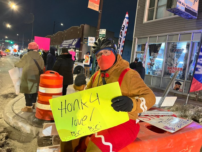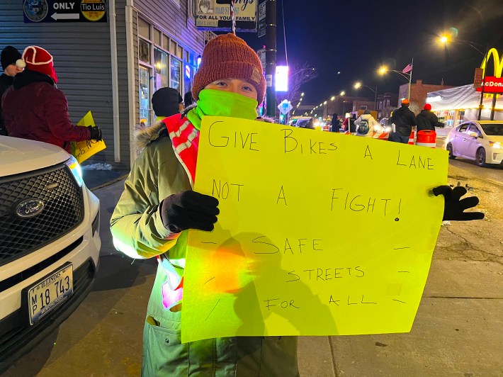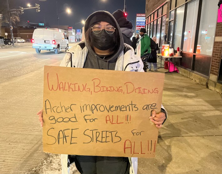 “I’m her to show support for the bike lanes in Brighton Park, and hopefully future bike lanes on Archer.”