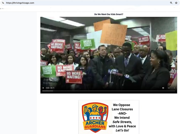 Want more evidence that the anti-Archer project campaign isn’t just grassroots, but involves Astroturfing by charter school lobbyists? Along with street redesign protest footage, The ThrivingChicago.com site includes a video of a rally with people literally holding up “More Charter Schools” signs!