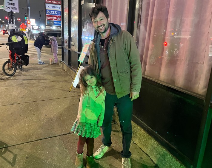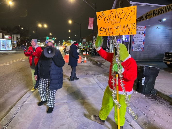 I politely asked the person in the Grinch costume where he lives, and he calmly replied that he is a Brighton Park resident named Zack. But a woman wearing a holiday headband pointed a megaphone at me, nonsensically claiming, “He doesn’t want to talk to you.”