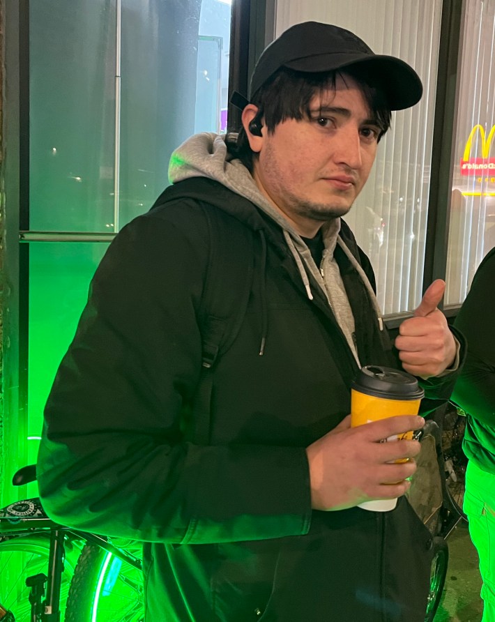In the photo above, it’s not obvious exactly what poll they’re claiming said 80 percent of participants are opposed to converting one “car” lane for non-car uses. Holiday Gerry is a young artist with a Mohawk haircut who lives in the area. At the March 15 rally, he told me he’s opposed to the safety project. It’s not clear whether he’s actually running for alder.