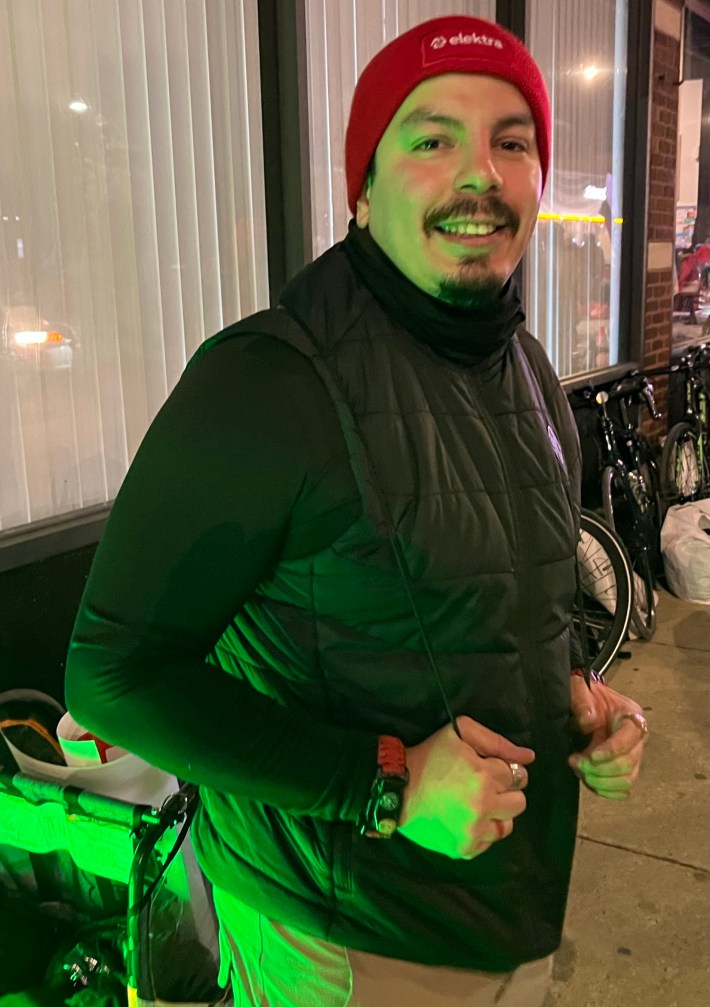 • Denise Escobar, who declined to be photographed, lives in Little Village. “I’m here just because I think bike infrastructure’s really important, and personally if it was here, I’d probably make my way around here a lot more often – it basically opens up a whole new section of the city for me.”