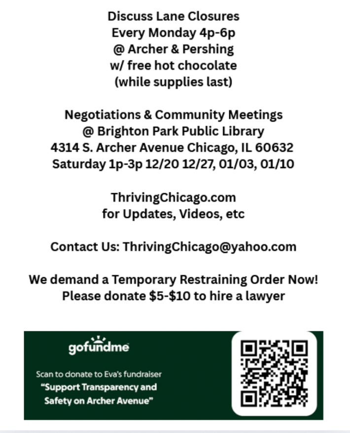 And that concludes my third writeup of the Archer Avenue traffic safety project rallies in three week, and it will probably be my last time attending one for a while. But, as you can see from the above flyer, the opposition is planning three more protests this winter, so if I hear of anything unusual happening, I’ll let you know.