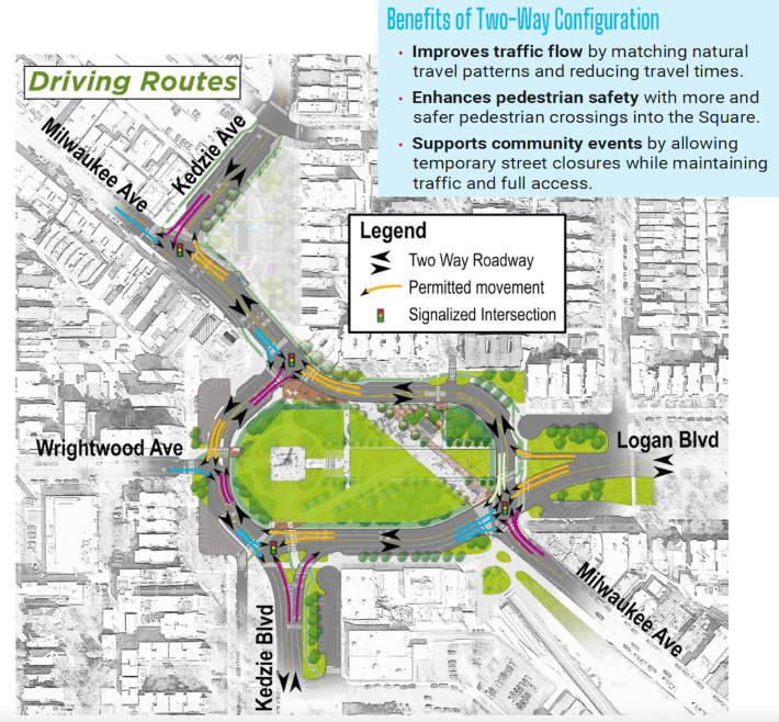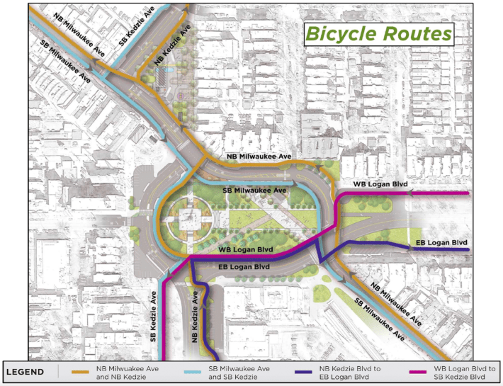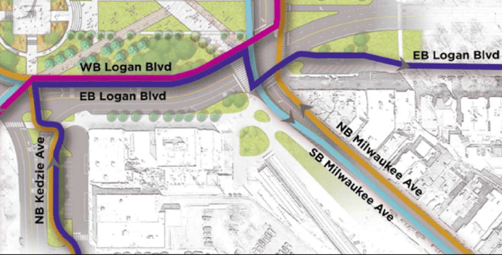 Gin said she is especially flummoxed by having to make three street crossings instead of just one to bike from northbound Kedzie to eastbound Logan by bike, via a weirdly circuitous route.