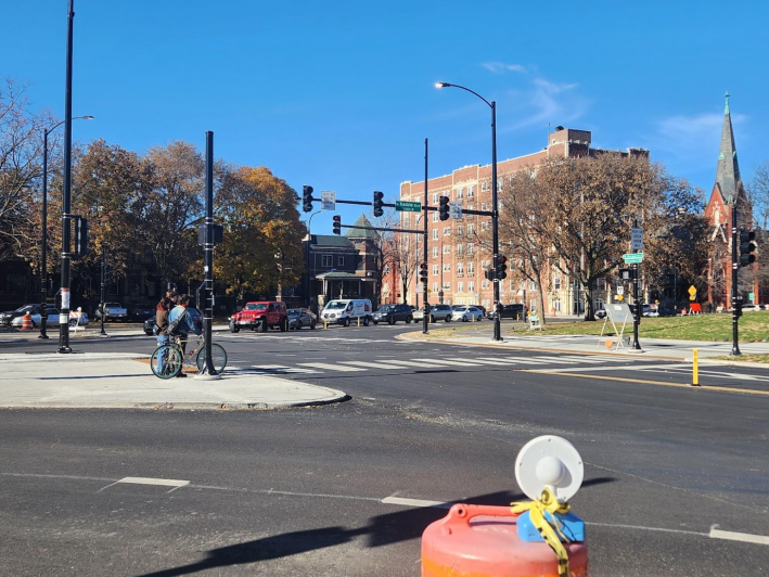Responding to a November 22 post on the Logan Square Community Page Facebook discussion group asking what people think of the redesign, Devon Glish commented, "As a walker, I love all the new crossings." They added, "It's much easier to get around. I don't understand why they couldn't have just kept the normal roundabout, though, and added crossings and bike lanes."