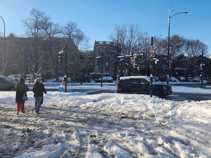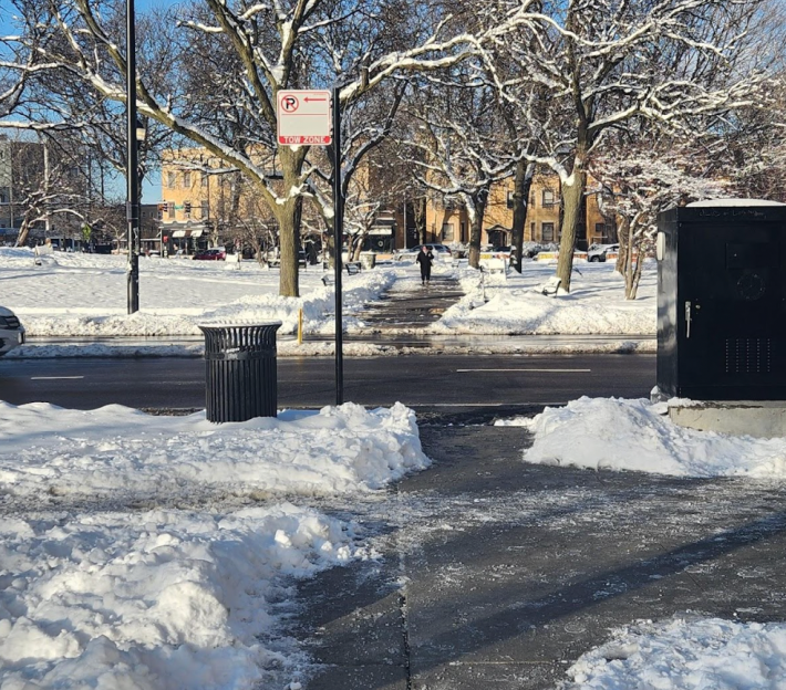 Meanwhile, the new cul-de-sac, and the sidewalk to the west of it, hadn't been cleared of snow. That forced people to trudge polar explorer-style across to get to and from the east-west Kedzie crosswalk.
