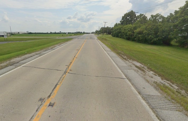 Why wasn’t he biking on the shoulder of the road? A possible reason is that east of the Interstate at a roadway labeled “Martec International” in the aerial below, the shoulders significantly narrow, and there are corrugated rumble strips. Those are difficult and dangerous to cycle on.