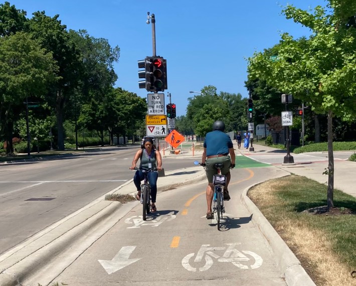 That mid-aughts network has since matured, and the City is reviewing three new major projects. The plan update will incorporate new data, including Illinois Department of Transportation crash data and updated bicycle counts at numerous intersections collected by volunteers last October. Updated data will be used to evaluate corridors based on criteria for safety, comfort, connectivity, equity, implementation, and impacts. The update will also include a gaps and barriers analysis, such as the Sheridan Road bend at South Boulevard. Lastly, the update will also review City policies, including likely updates to currently-ambiguous e-scooter policies.
