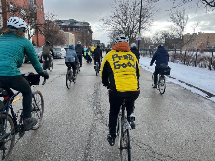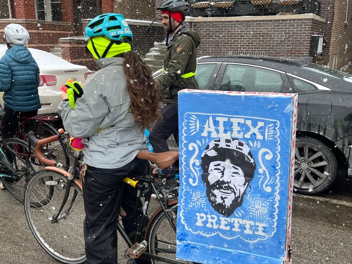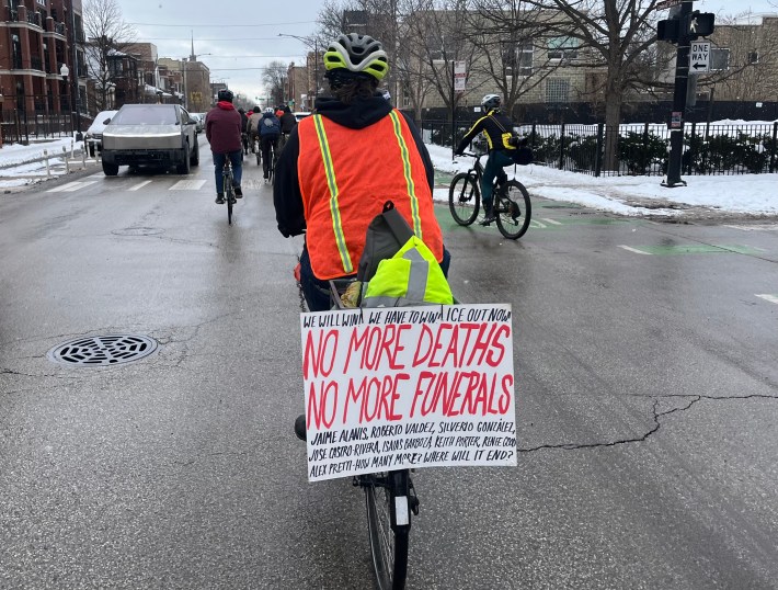 “Join us today to ride in memory of Alex Pretti and in solidarity with Minnesota in the fight against fascism,” posted Better Streets Chicago. They thanked Chicago, Bike Grid Now! and a Adam Babbel, who posts at @babski.bsky.social, for organizing the event.