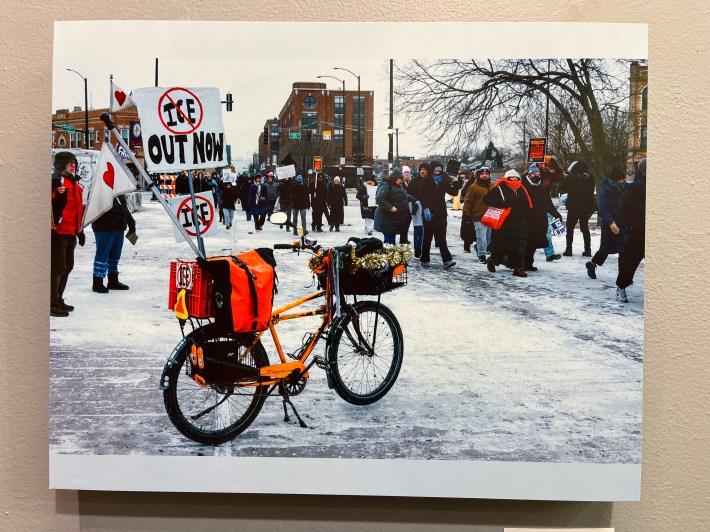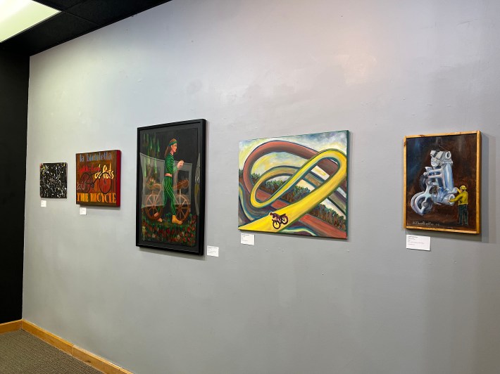 "See creative artworks, iconography and object ephemera from Chicago's ARTS and ADVOCACY communities that celebrate, revere, lionize, criticize and focus on THE BICYCLE as symbol of activism, invention, agency, community, strategy and sustainable transportation," the show's webpage states. "This exhibit presents works in all media – paint, print, drawing, sculpture, photography, video, audio, installation, craft and fashion. The curatorial theme—and only content restriction—is that the work should be bicycle themed or inspired."