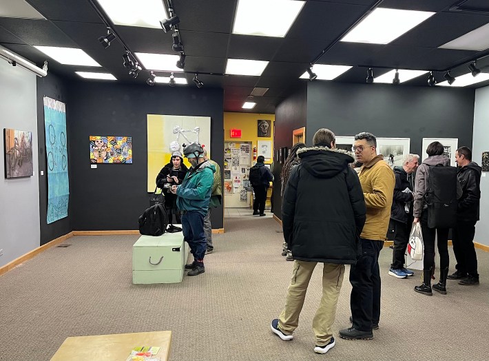 The center is led by Alex Wilson, who curates the Bike Winter Art Show. Here's a (non-brick-and-mortar) gallery of images from the opening, with a focus on works with a political theme.