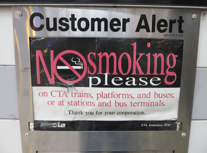 Welcome to the second installment of "Streetsblog Chicago versus smoking on the CTA," our unconventional effort to find holistic solutions (not just more policing) to the vexing problem of smoking inside 'L' cars. Read part one to get up to speed on my perspective and approach to this topic. As many people are aware, burning tobacco or cannabis, or vaping, in an enclosed space is a serious danger for people with respiratory issues, seniors, and young kids. For the rest of us, it's also unhealthy, and a major annoyance and deterrent to using transit.
