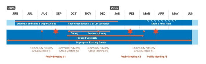 A current timeline of past and future engagement opportunities for the Moving Archer Forward plan. Source: DPD.