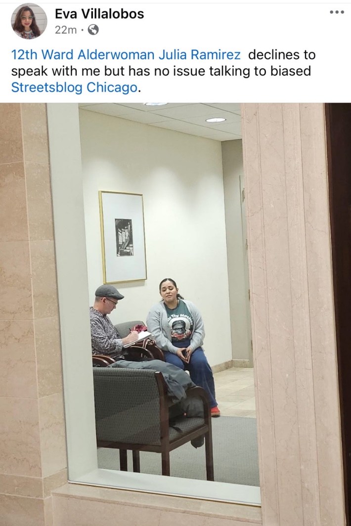 The weather was gloomier today, and so was the mood at today's monthly Committee on Pedestrian and Traffic Safety meeting at City Hall. The hearing consisted of almost nothing but grievances about the Archer initiative from residents, business owners, and/or political foes of 12th Ward representative Ald. Julia Ramirez, some of whom were at Monday's protest. Ramirez, who's not a member of the committee, showed up at today's event because. She'd heard that project opponents would be testifying, even though the committee had no items in its agenda addressing Archer.