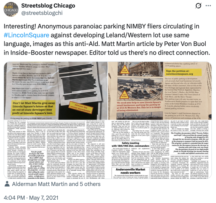 That said there were interactions like the ones you described with the Inside Booster, and specifically around this affordable housing, that I would describe as very much hostile. And that particular proposal was probably the major proposal of Ald. Martin's first term. And it was a fight, and we won it, right? We won the public discourse narrative. We won the people. And I think there are few people who remain upset about this project.