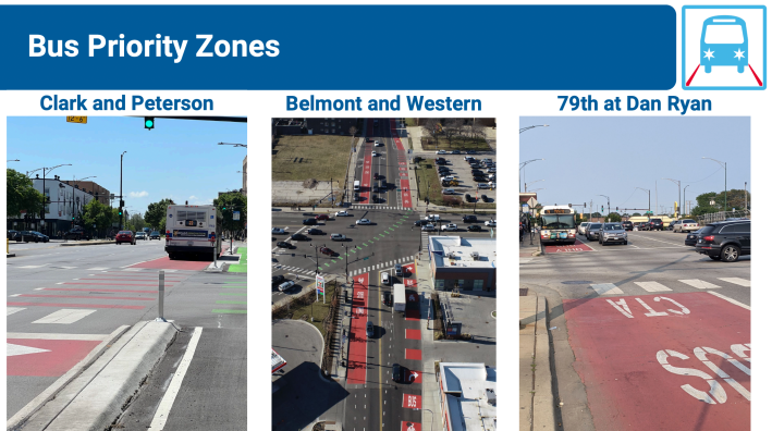 The CTA is collaborating with the Chicago Department of Transportation on the planning process for possible street improvements to make travel on these transit routes safer, more efficient, and more pleasant. Under consideration are bus-only lanes; bus stop upgrades; better sidewalks and crosswalks; bus-priority traffic signals; and more. You can learn more about the initiative at the CTA's Better Streets for Buses Plan webpage.