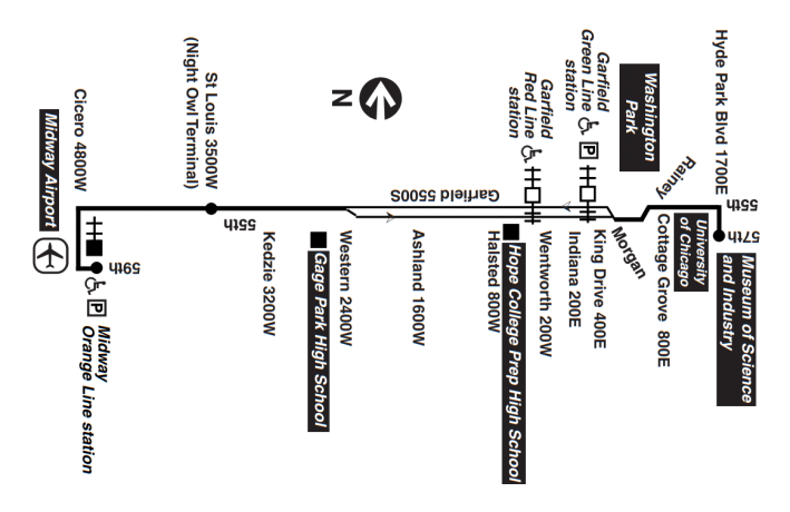 - 55th Street/Garfield Boulevard (between Cicero Avenue and South Hyde Park Boulevard )