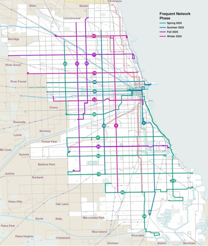 "CTA's Frequent Network has been a game-changer for our riders, providing them with the kind of bus service and frequency that we know they deserve," CTA Acting President Nora Leerhsen stated at the time. "The increased service frequency that our network provides means shorter waits for buses and higher ridership along routes that have received increased service."