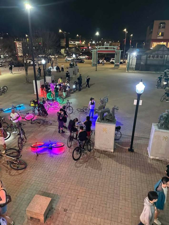 "Afterwards we took a ride to Little Village, then to Harris Park in Pilsen, and finally to Chinatown where we hung out for a bit before returning to Brighton Park," Valladares concluded. "We met up with Sugondy Rides to 'Light Up' Chinatown Square in memory of Manny Leds [Juan Manuel Macias Jr.] from CC LED [a bike light and e-bike company], who unexpectedly passed away recently. CC LED is where we all get our wheel led lights."