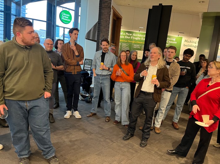 I dropped by Friday’s event, moderated by CAM (and Streetsblog Chicago) cofounder Steven Vance, which drew dozens of climate and sustainable transportation advocates to the museums scenic riverside location. During the Q & A section, Chicago Critical Mass founding parent Michael Burton asked the authors for some words of wisdom.