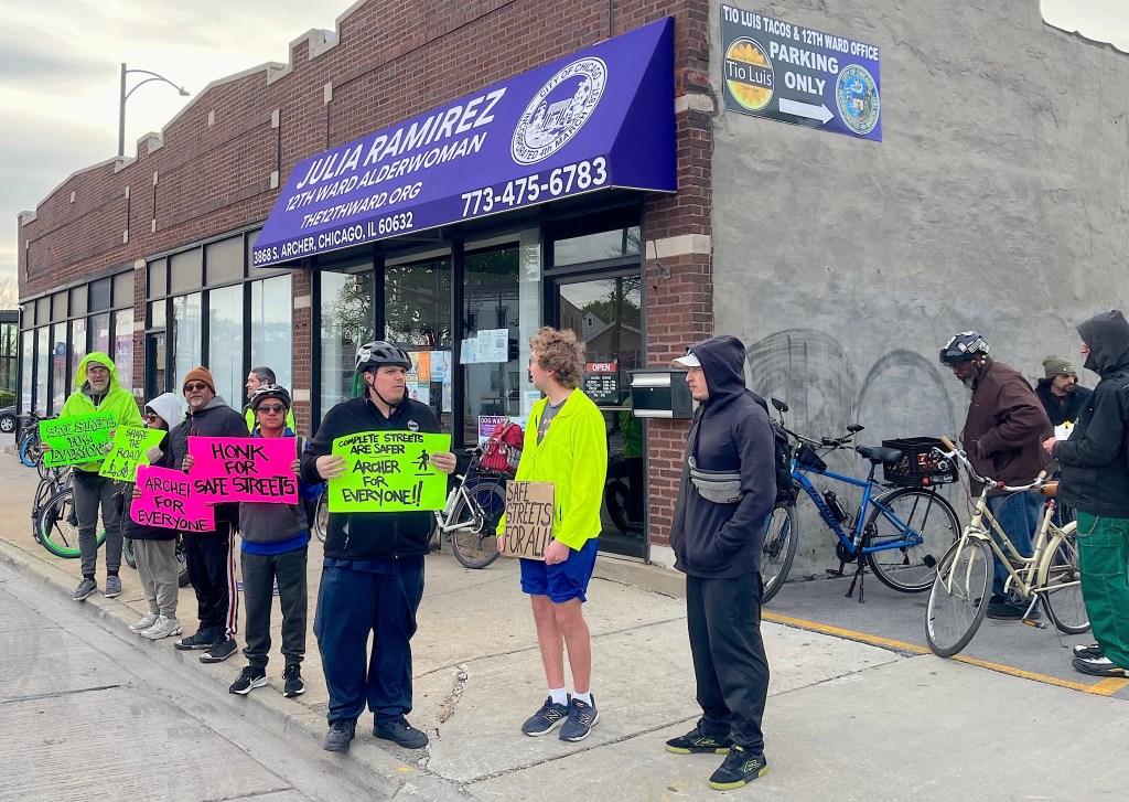 The tricky part is that Mondays during the evening rush are the exact same time as the very similar protests against the Archer Avenue traffic safety project in Brighton Park on the Southwest Side, which I’ve been trying to chronicle on a weekly basis. Read our post about last Monday’s Archer event here.