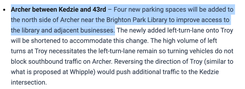 Granted, one local merchant who spoke at Monday’s press event had a grievance that wouldn’t seem unwarranted – to someone who hasn’t been closely following this issue. “People come and don’t know where to park,” said Juan Castro of Monterrey Bakery, 4328 S. Archer Ave. It’s located on the north side of Archer, halfway between Kedzie Avenue and 43rd Street, just west of the Brighton Park Library, which has several car spaces in back.